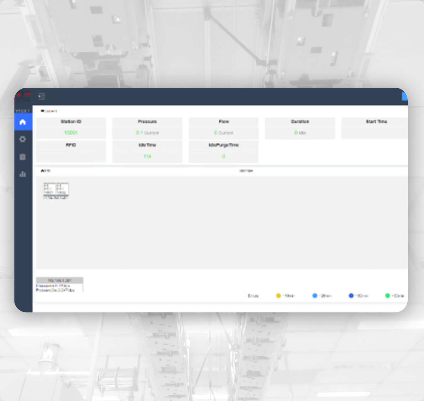 The OHBP control system cleans and purges the ports of the entire bay, offering two modes: continuous purge and inductive purge. It can be equipped with RFID sensors and temperature/humidity sensors, recording the number of Foup placements and tracking temperature/humidity changes throughout the purge process. In case of abnormal RFID readings or substandard temperature/humidity, it provides real-time alarm functionality;